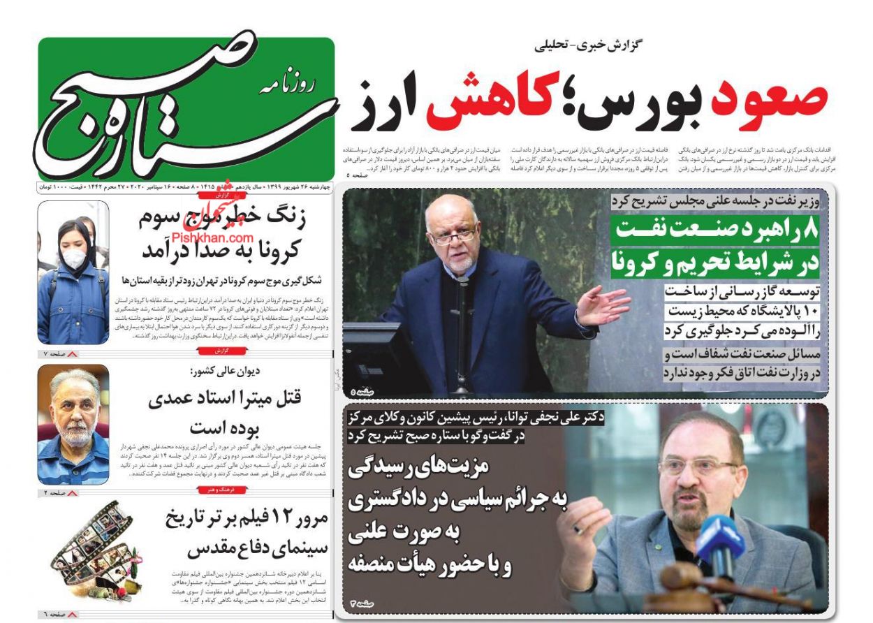 صبح امروز ، چهارشنبه ۲۶ شهريور