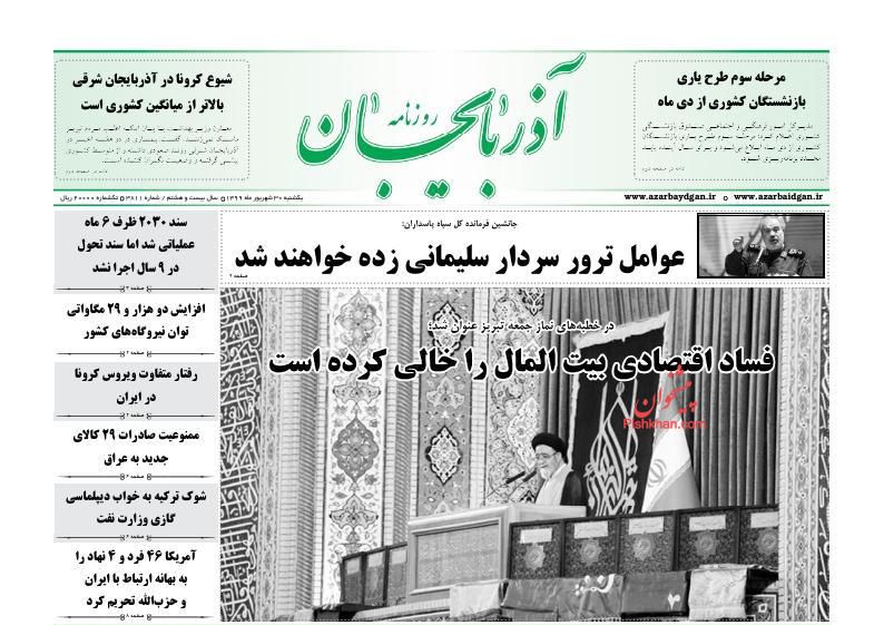 آذربایجان ، یکشنبه ۳۰ شهريور