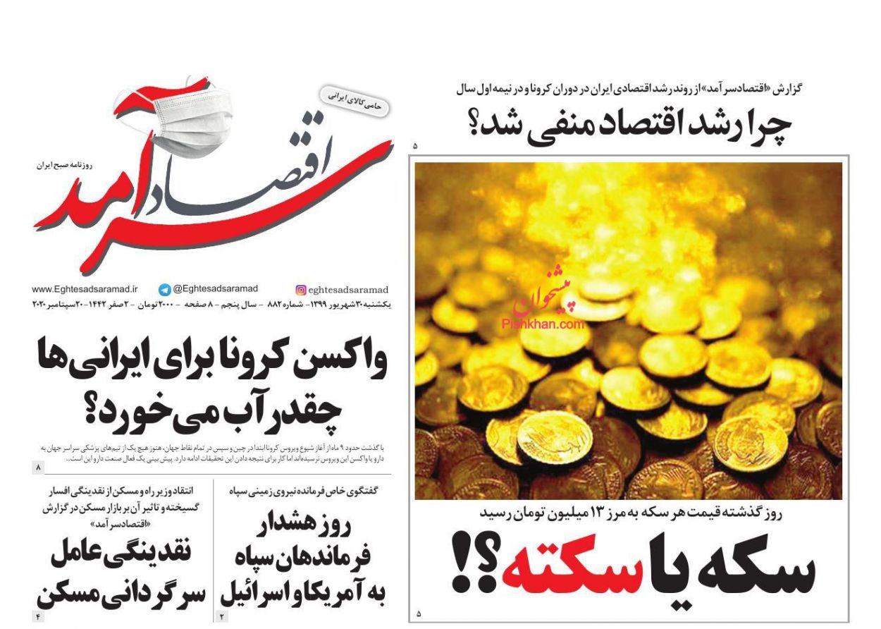 اقتصاد سرآمد ، یکشنبه ۳۰ شهريور