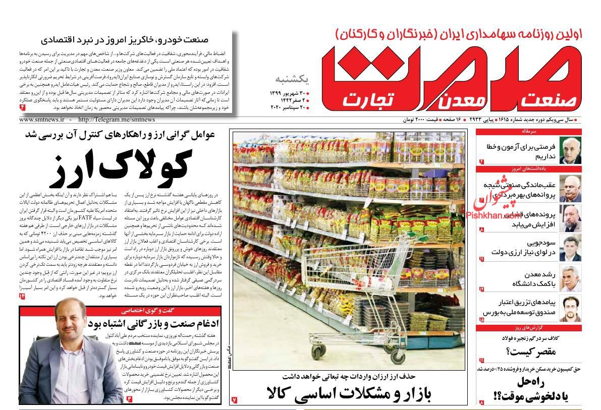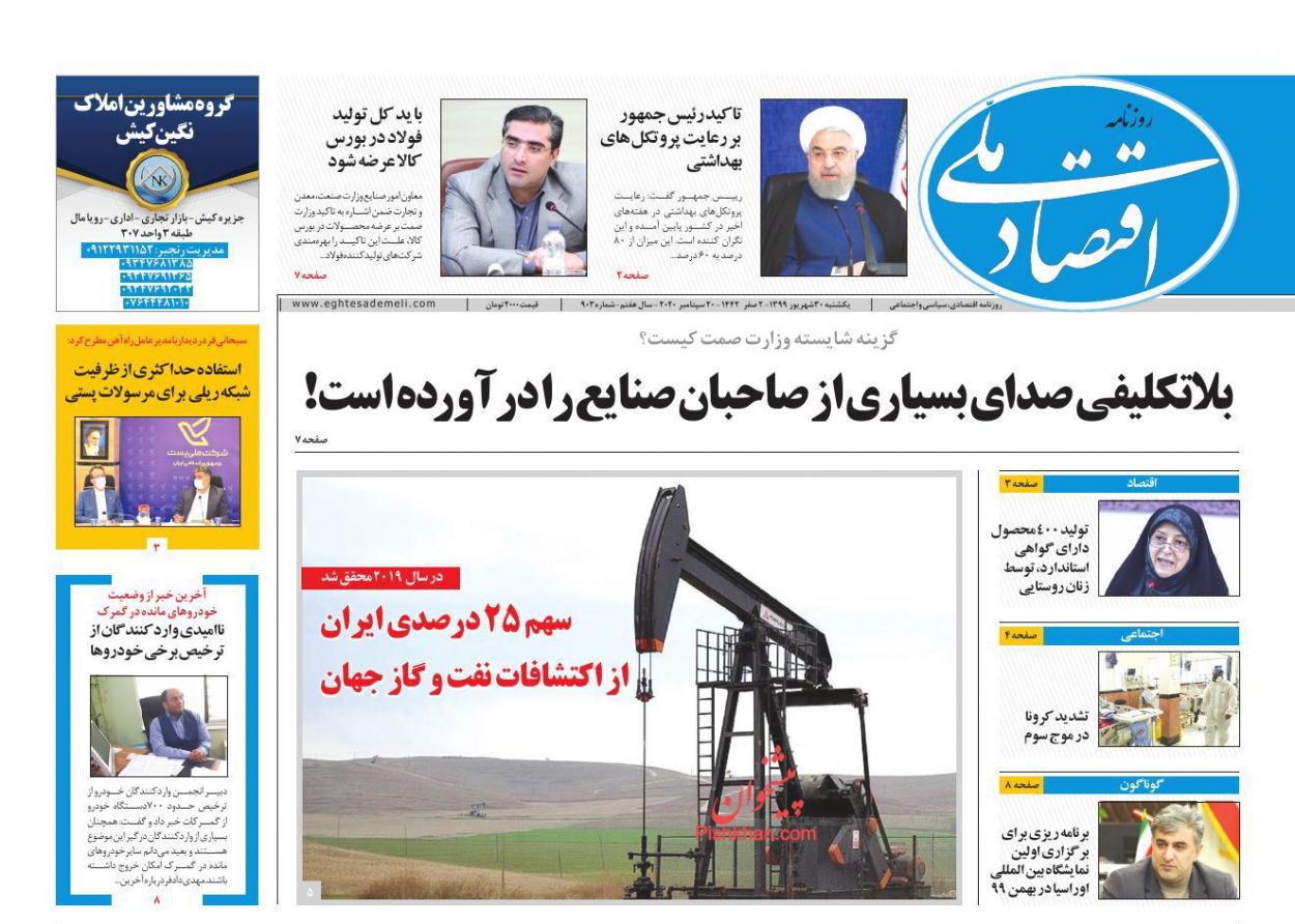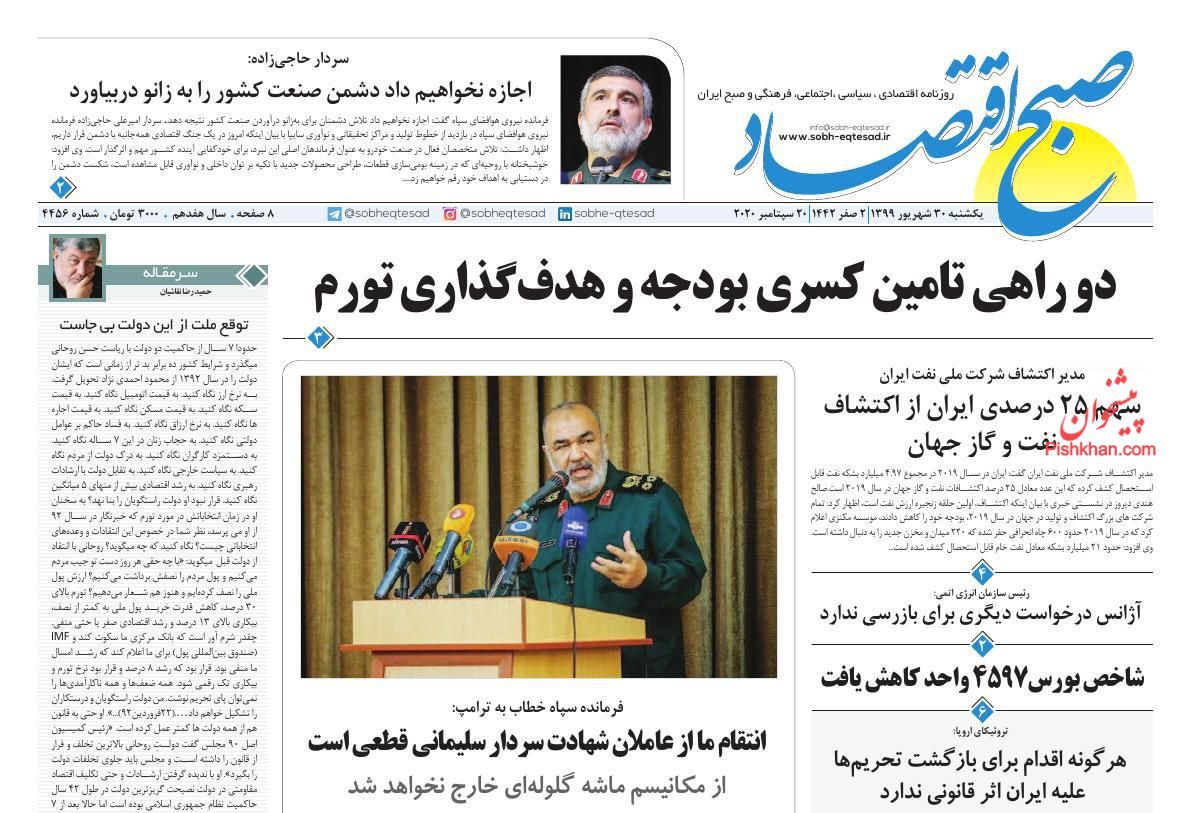 اقتصاد ملی ، یکشنبه ۳۰ شهريور