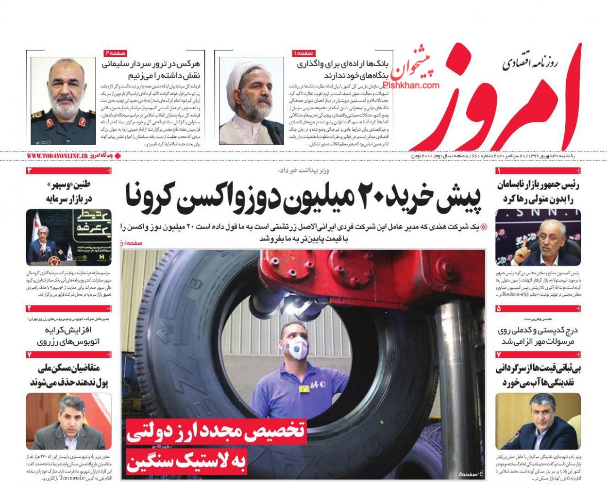 وطن امروز ، یکشنبه ۳۰ شهريور