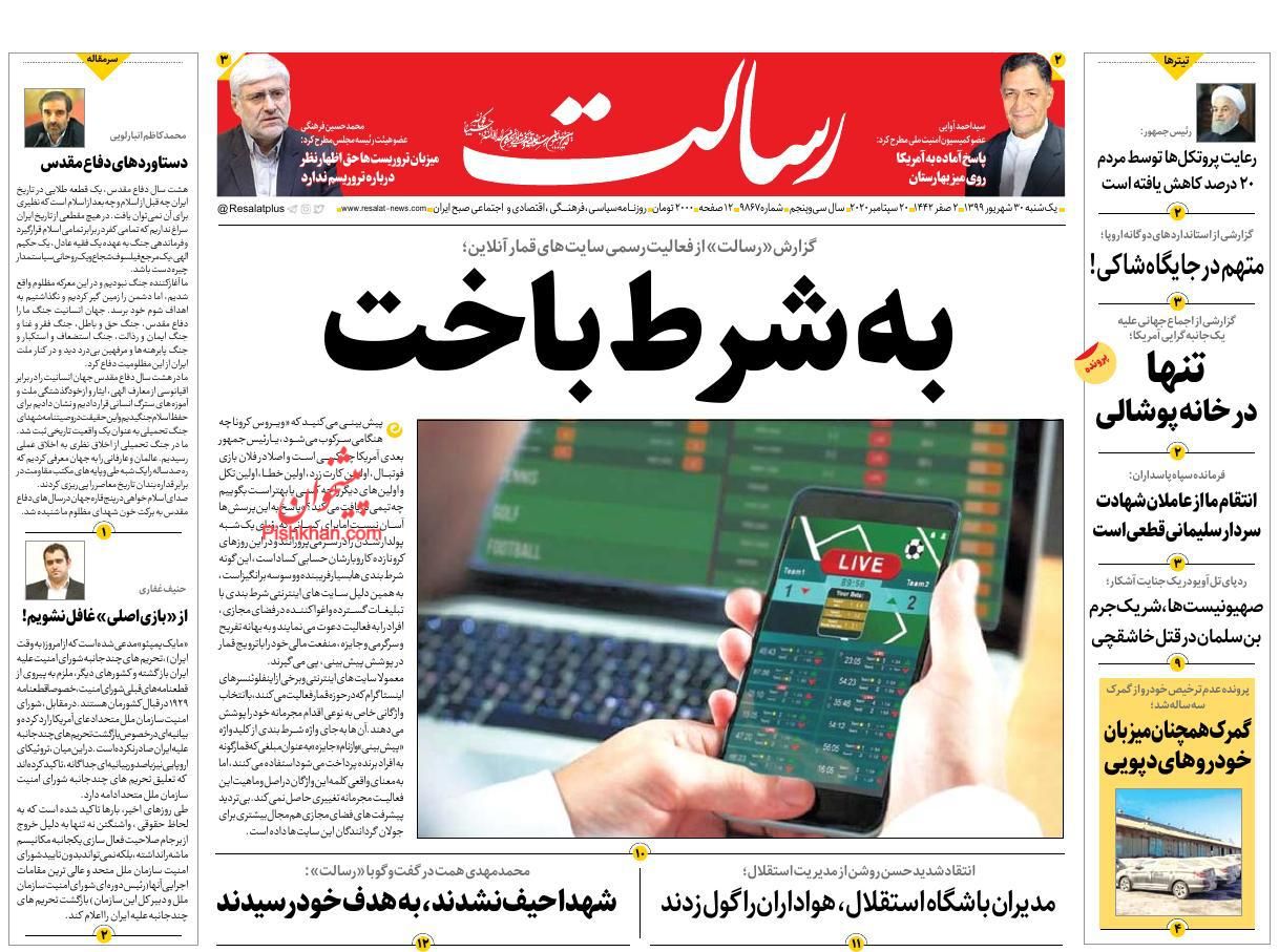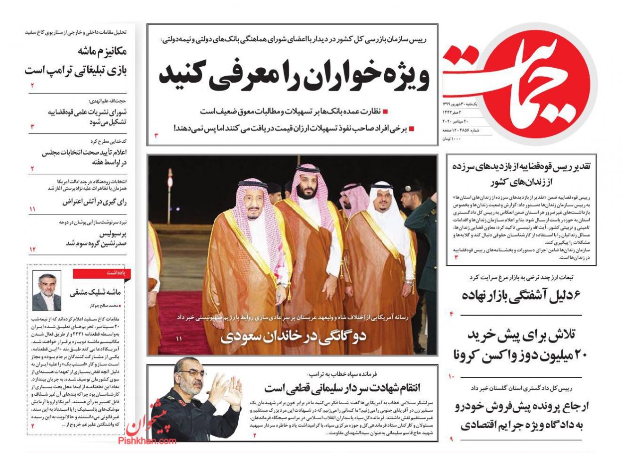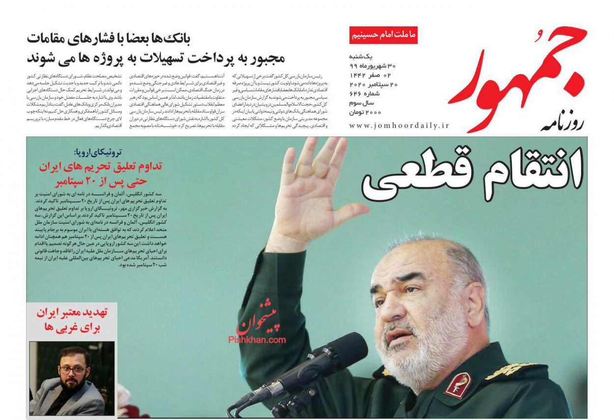 جمهوری اسلامی ، یکشنبه ۳۰ شهريور