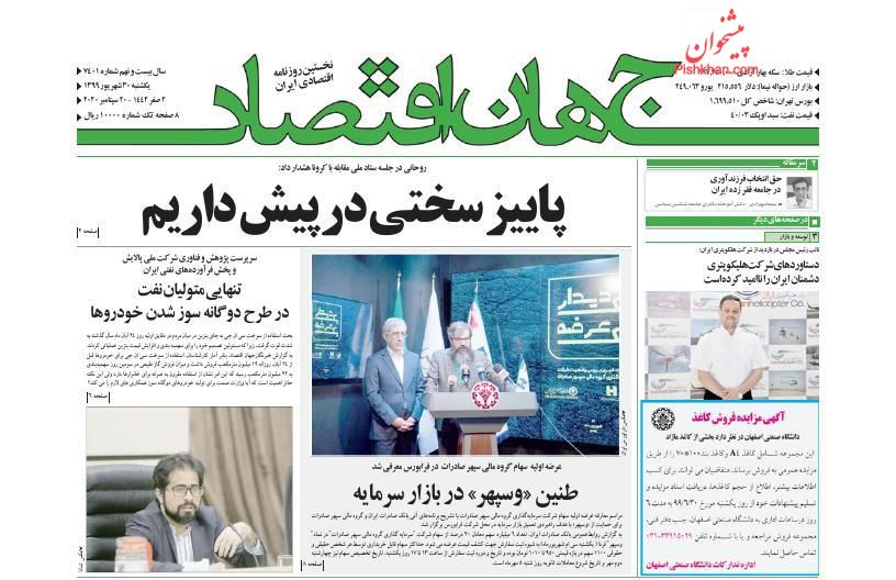 جهان اقتصاد ، یکشنبه ۳۰ شهريور