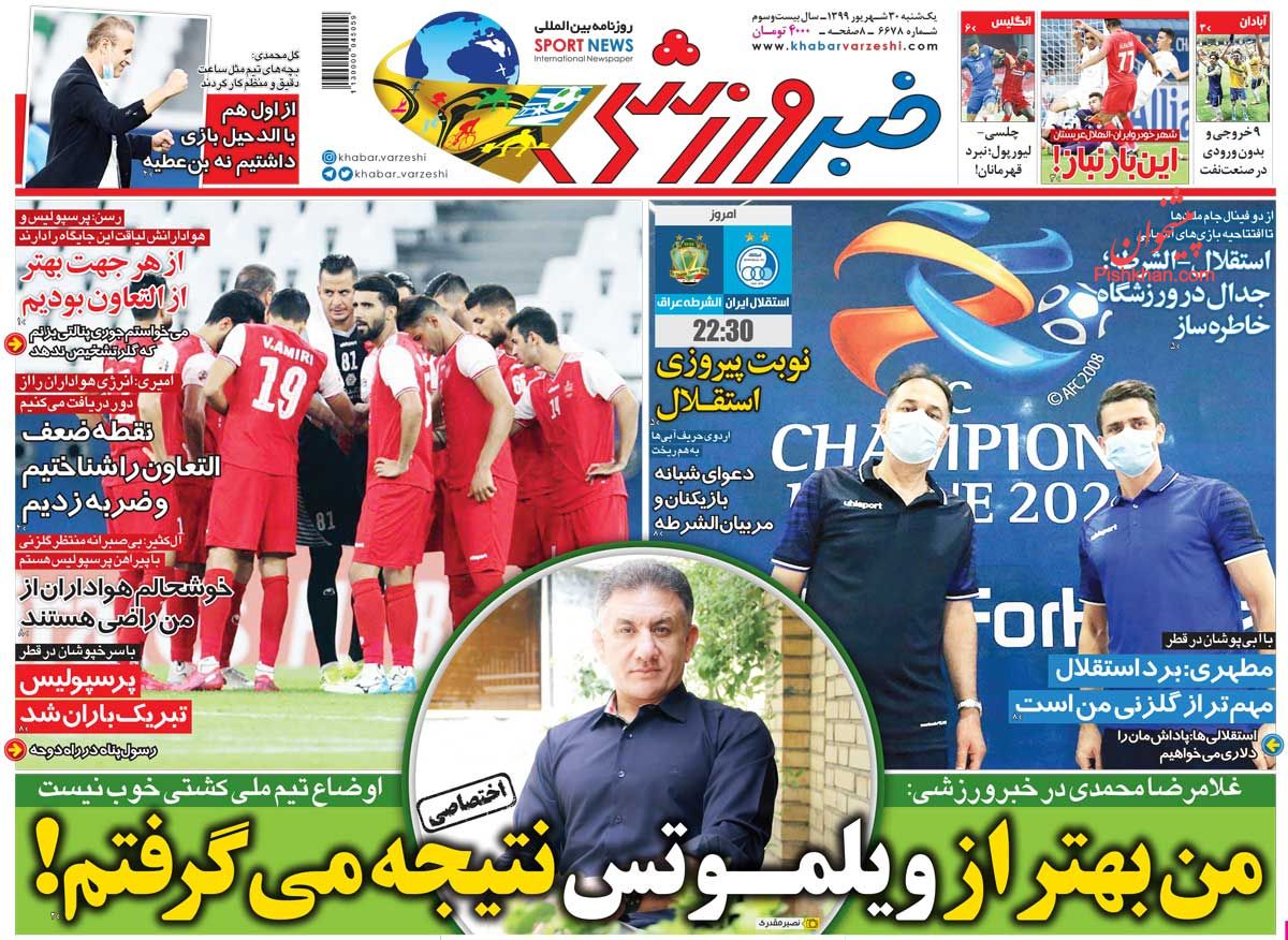 خبر ورزشی ، یکشنبه ۳۰ شهريور