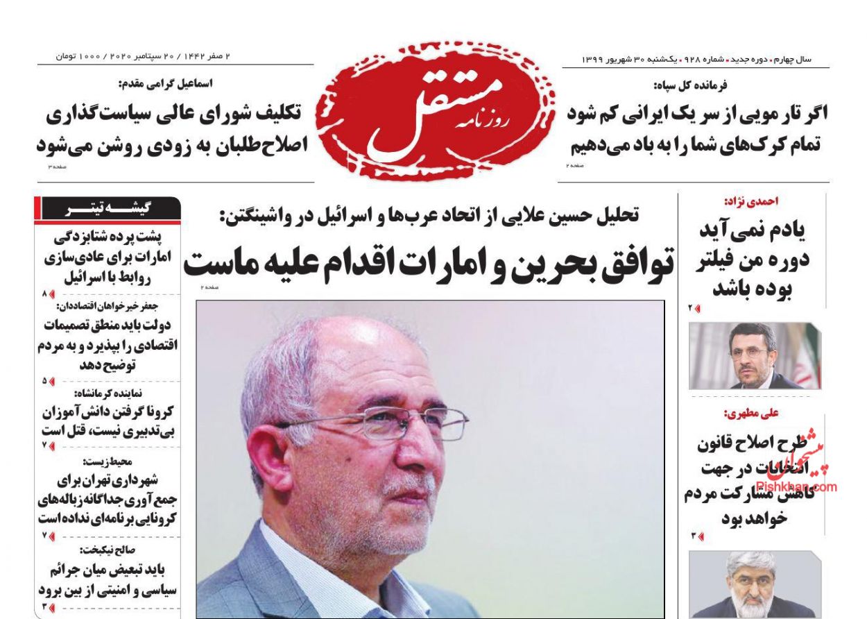 مردم سالاری ، یکشنبه ۳۰ شهريور