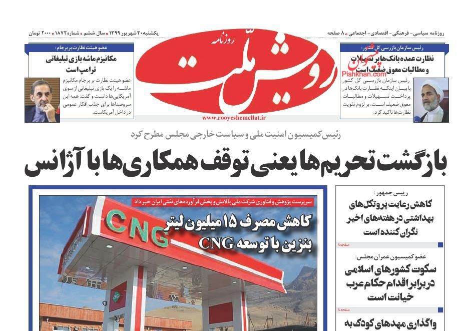 عصر ایرانیان ، یکشنبه ۳۰ شهريور