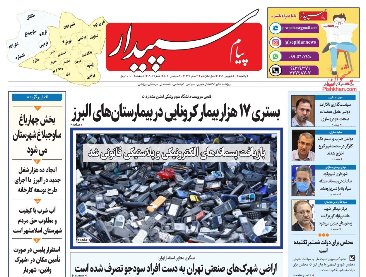 پیام سپیدار ، یکشنبه ۳۰ شهريور