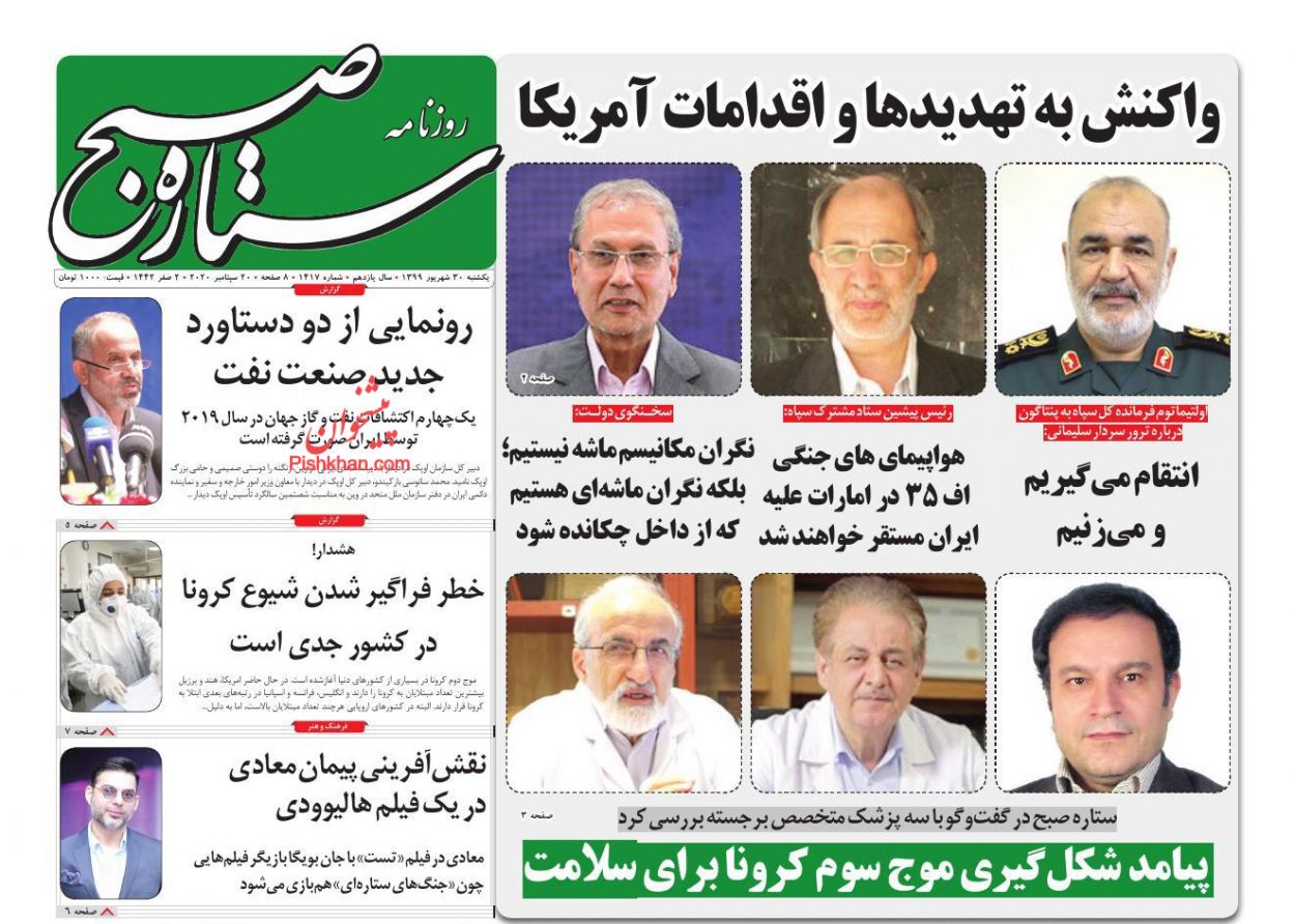 صبح امروز ، یکشنبه ۳۰ شهريور