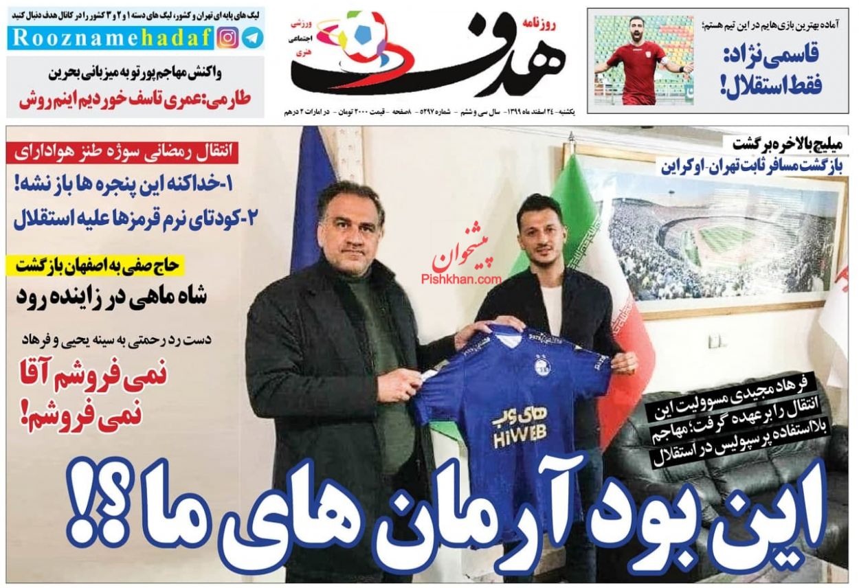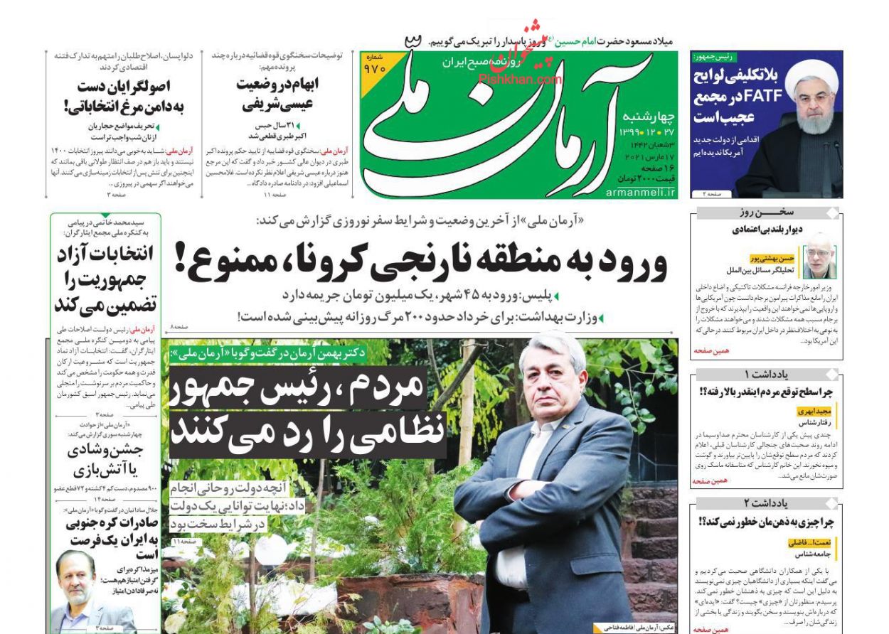 آرمان ملی ، چهارشنبه ۲۷ اسفند