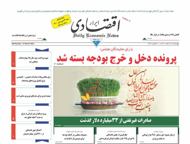 جهان اقتصاد ، چهارشنبه ۲۷ اسفند