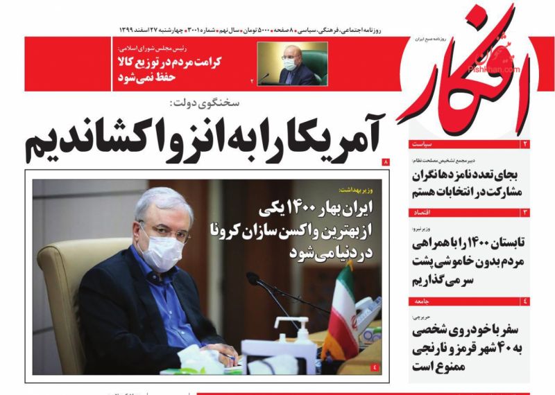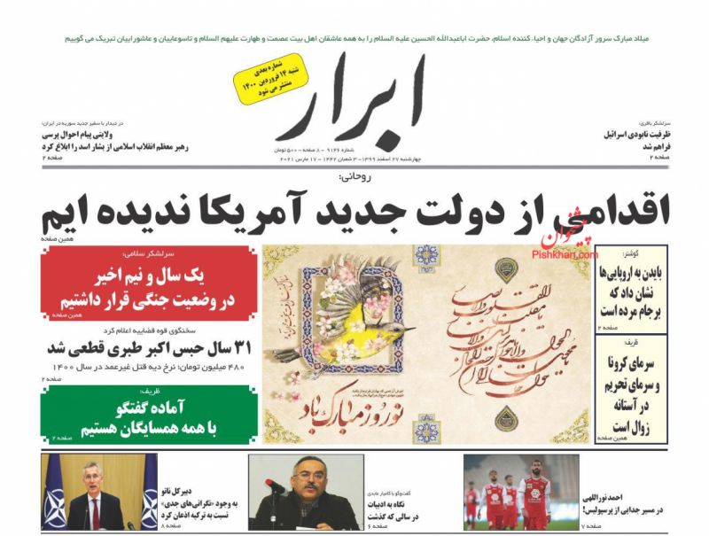 ابتکار ، چهارشنبه ۲۷ اسفند