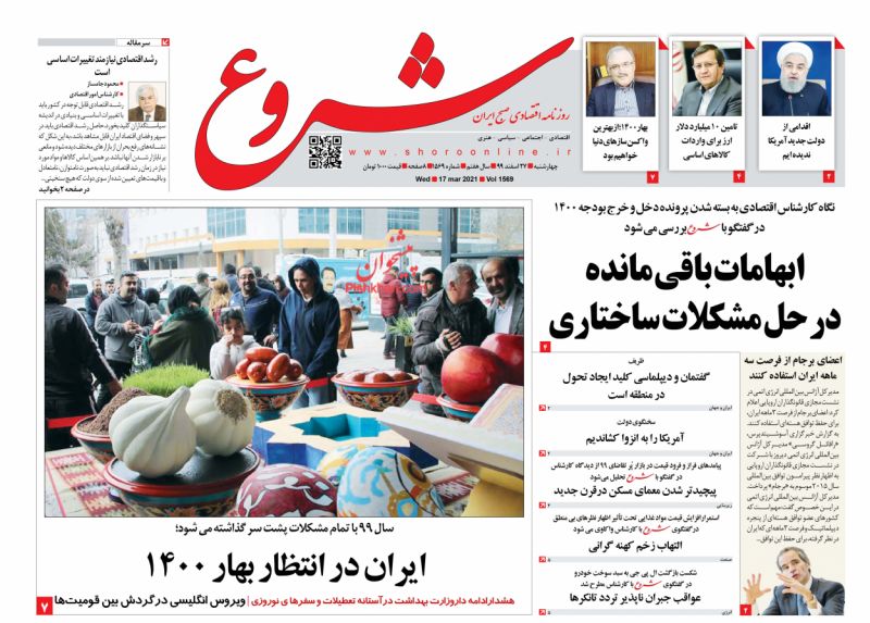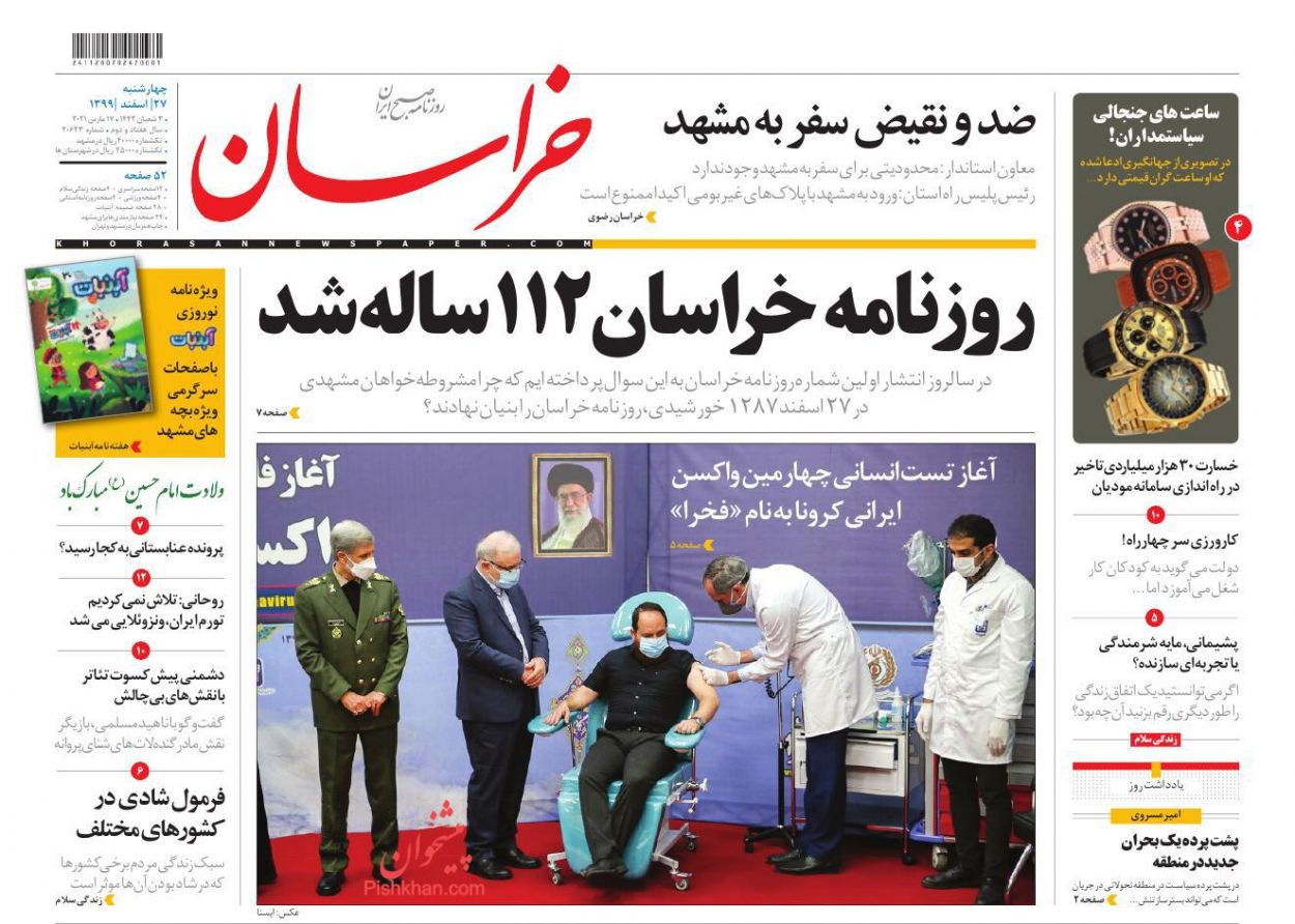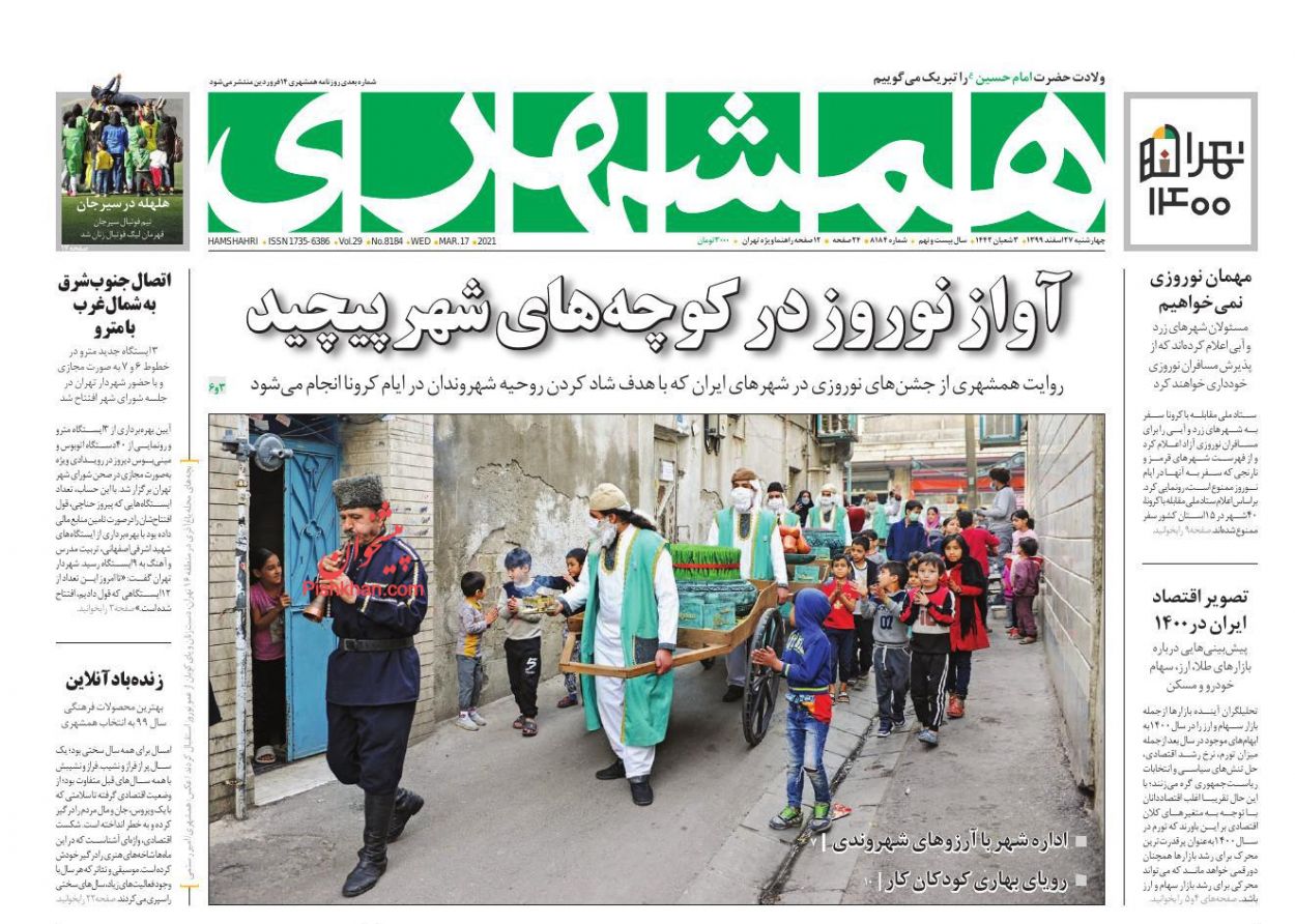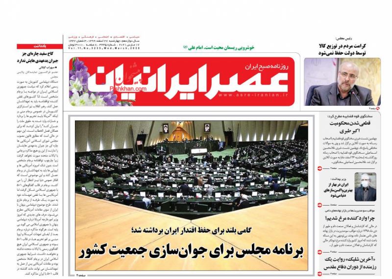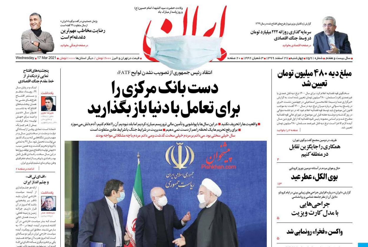 عصر ایرانیان ، چهارشنبه ۲۷ اسفند