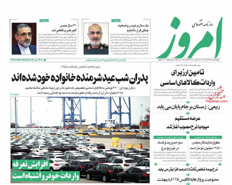 وطن امروز ، چهارشنبه ۲۷ اسفند