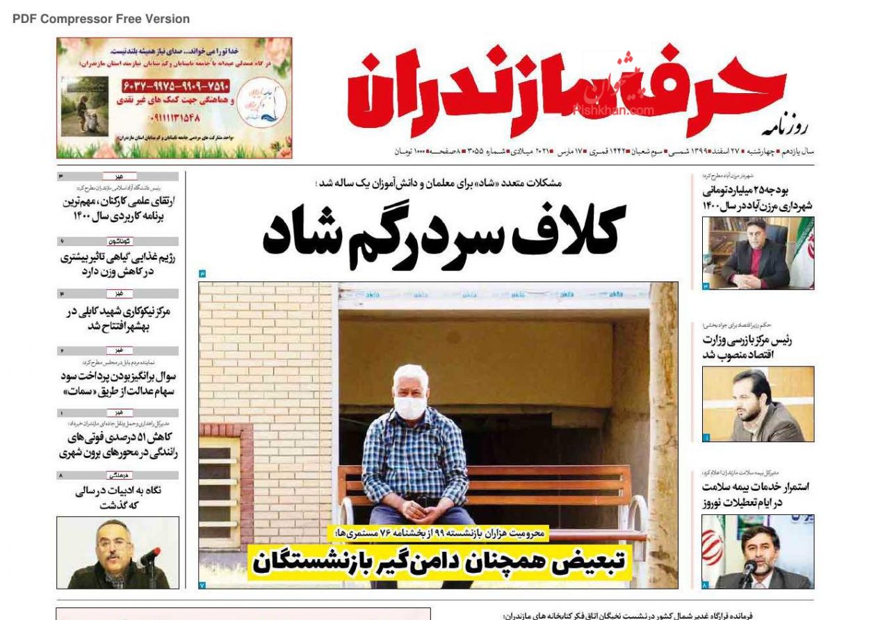 حرف مازندران ، چهارشنبه ۲۷ اسفند