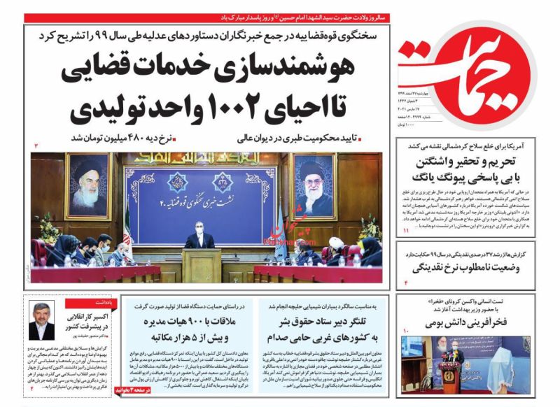جمهوری اسلامی ، چهارشنبه ۲۷ اسفند