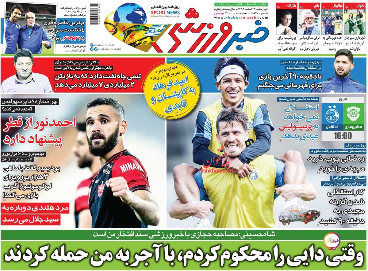 خبر ورزشی ، چهارشنبه ۲۷ اسفند