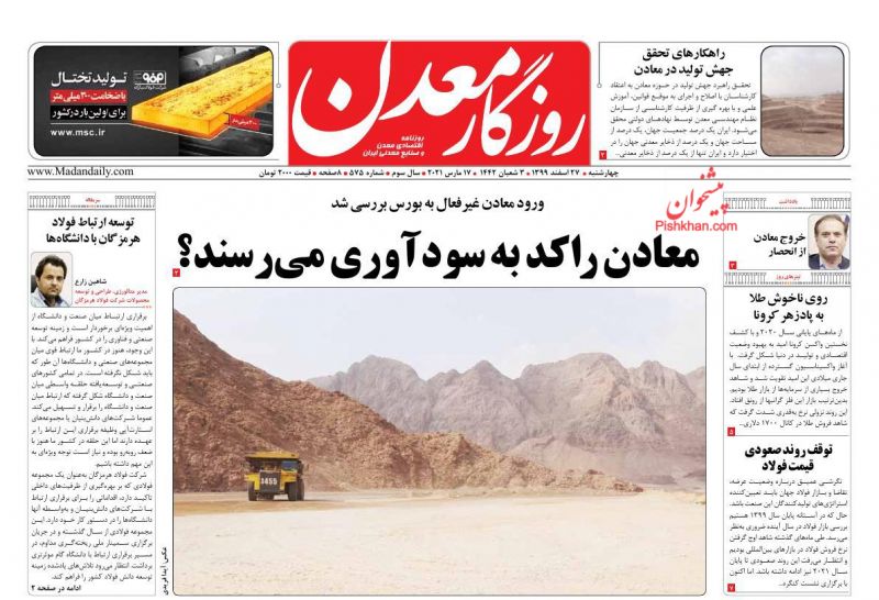 روزگار معدن ، چهارشنبه ۲۷ اسفند
