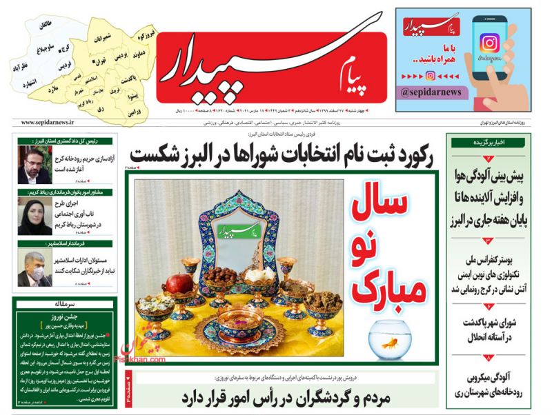 پیام سپیدار ، چهارشنبه ۲۷ اسفند
