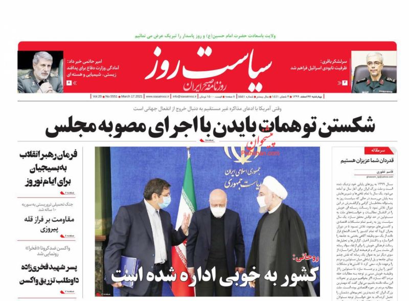 سیاست روز ، چهارشنبه ۲۷ اسفند