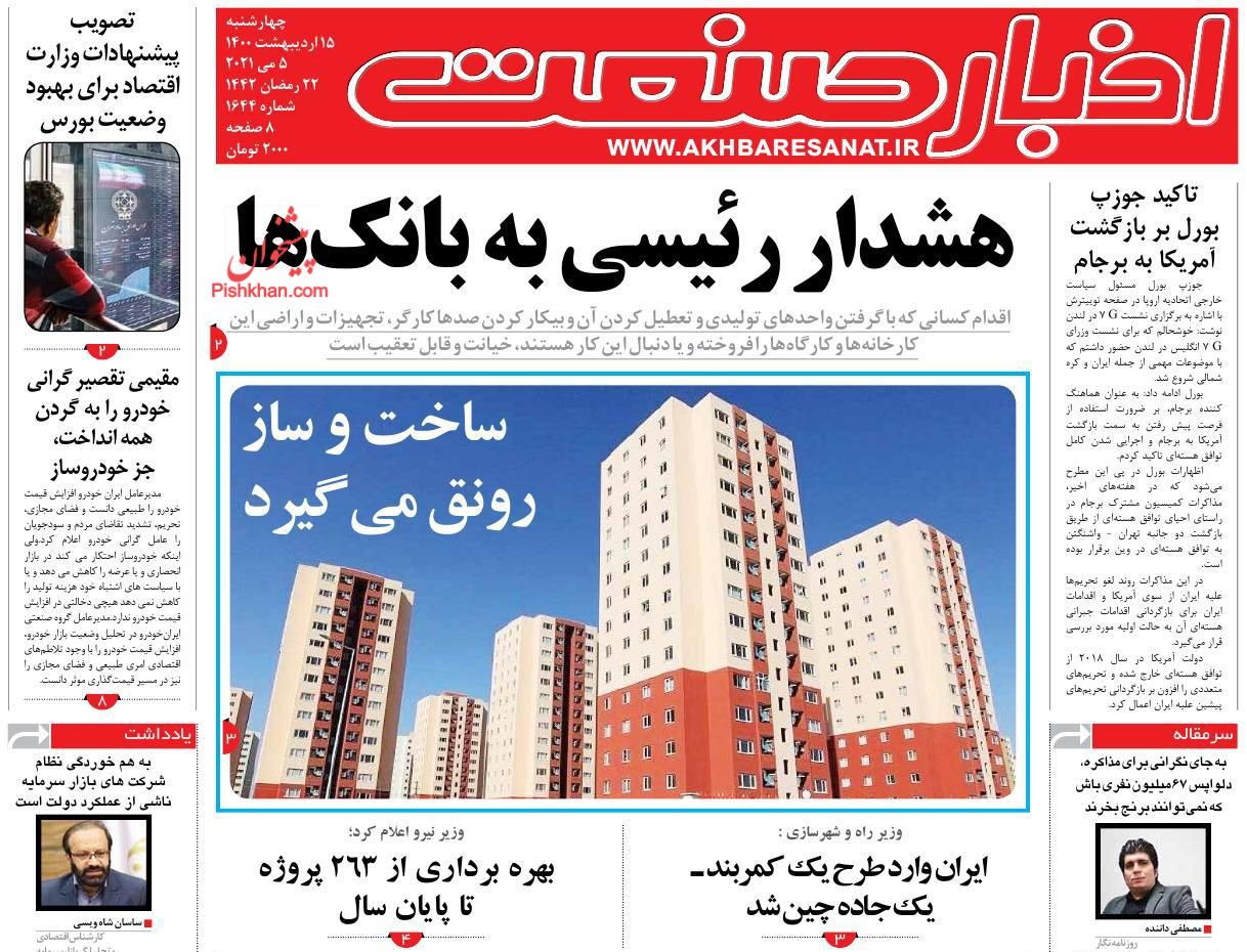 جهان صنعت ، چهارشنبه ۱۵ ارديبهشت