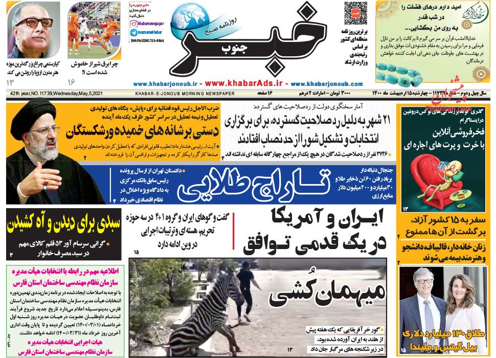 خبر جنوب ، چهارشنبه ۱۵ ارديبهشت
