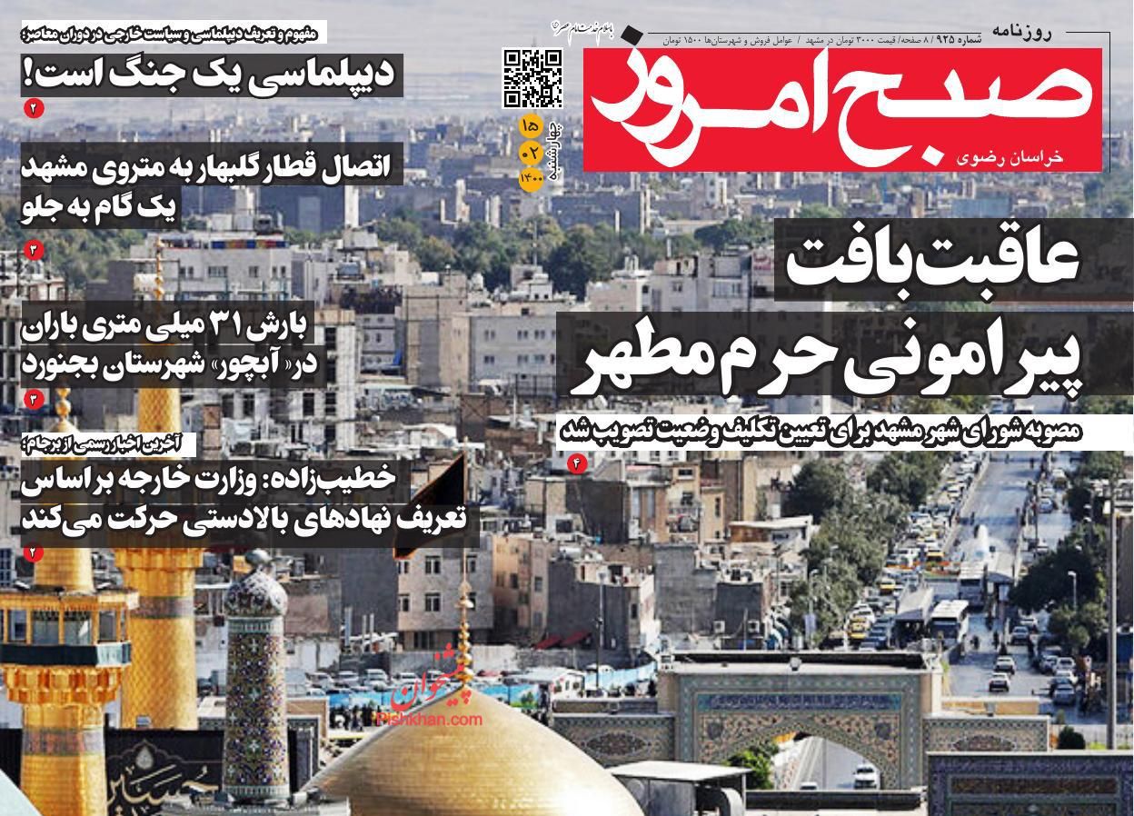 صبح امروز ، چهارشنبه ۱۵ ارديبهشت