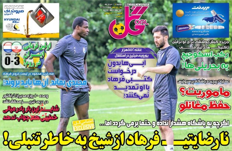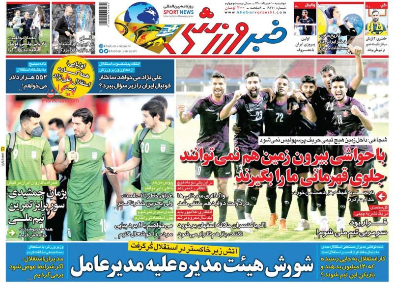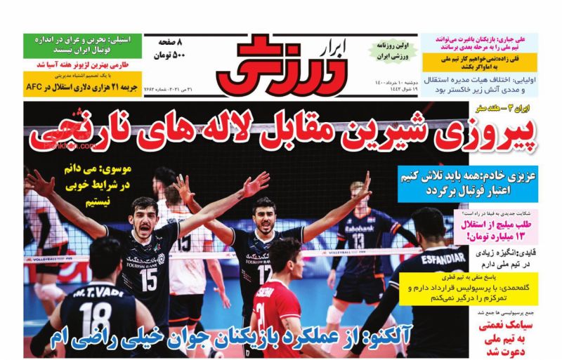 ایران ورزشی ، دوشنبه ۱۰ خرداد