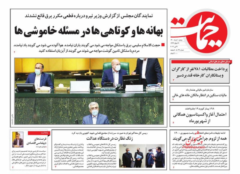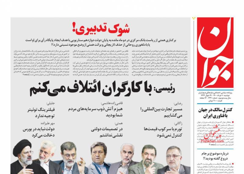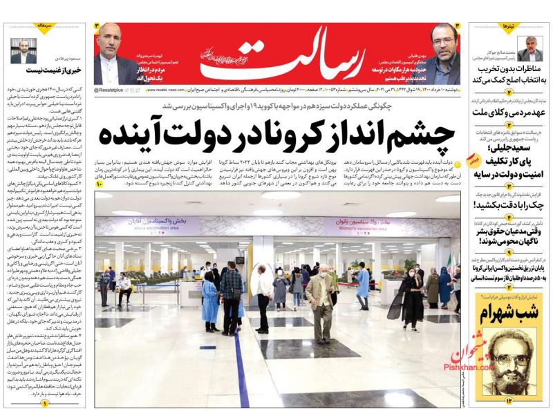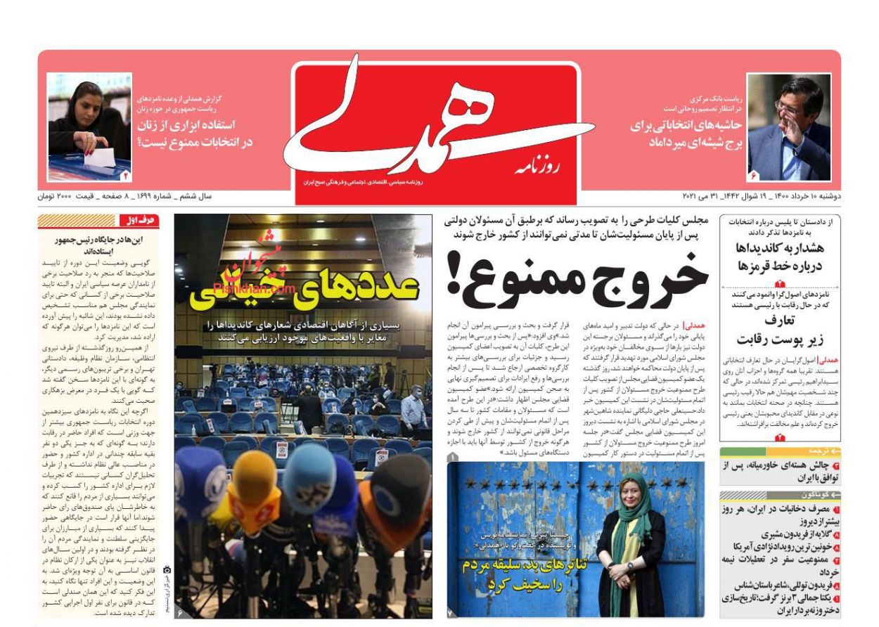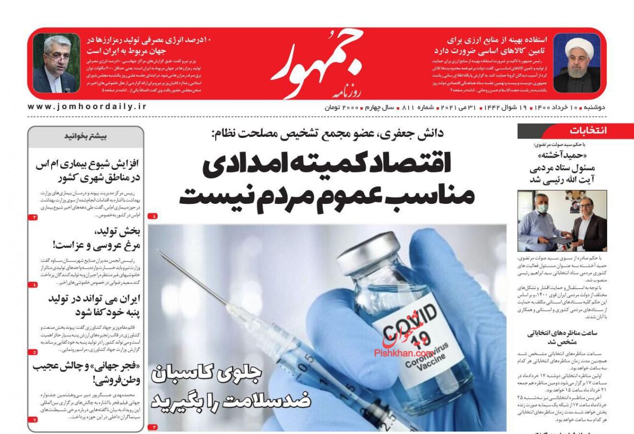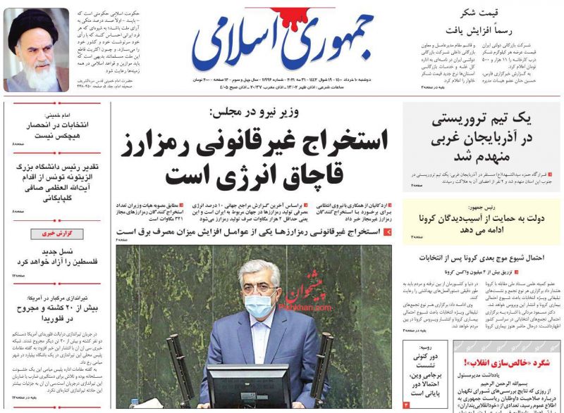 جمهوری اسلامی ، دوشنبه ۱۰ خرداد