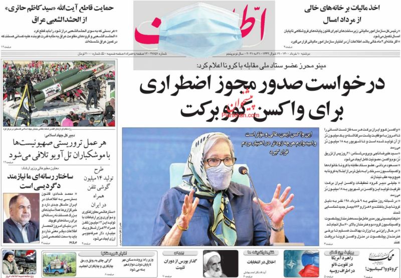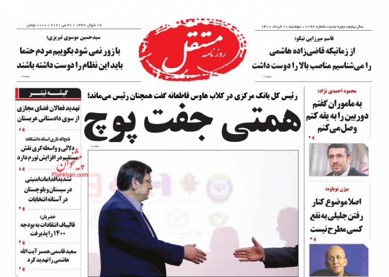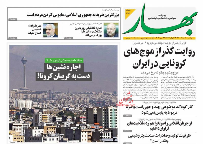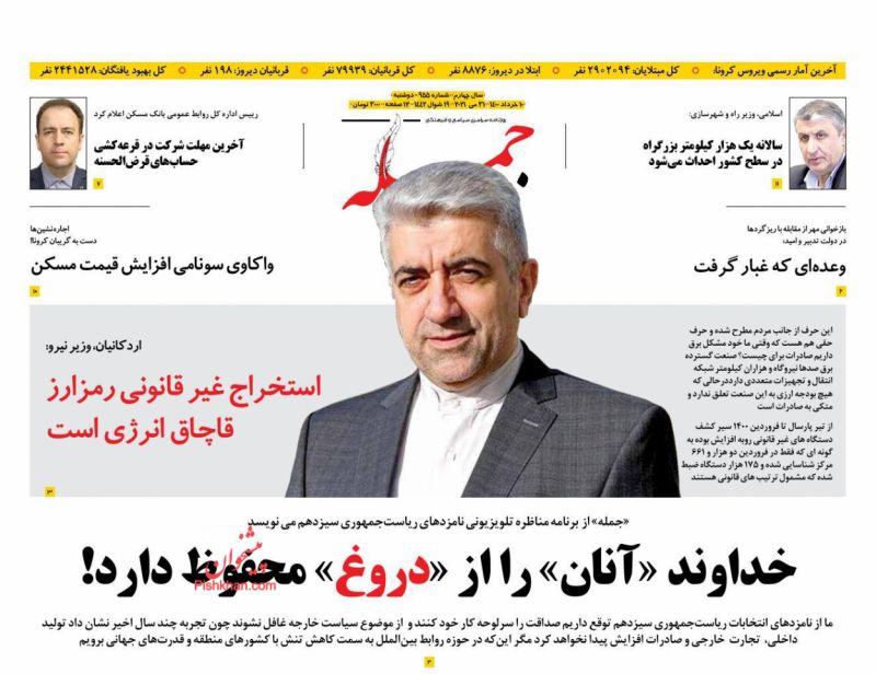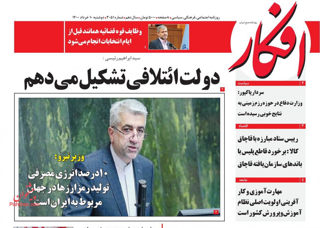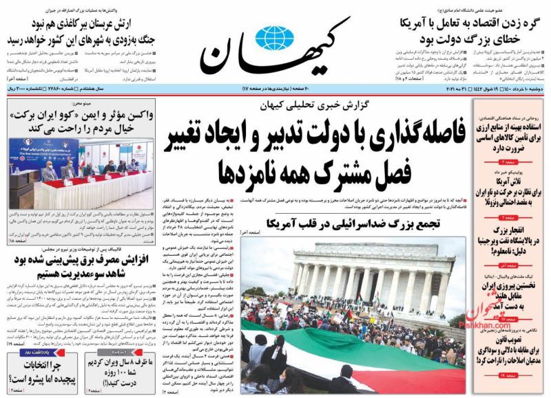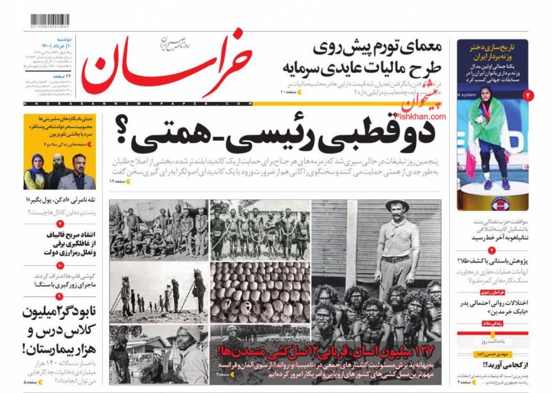 جمهوری اسلامی ، دوشنبه ۱۰ خرداد