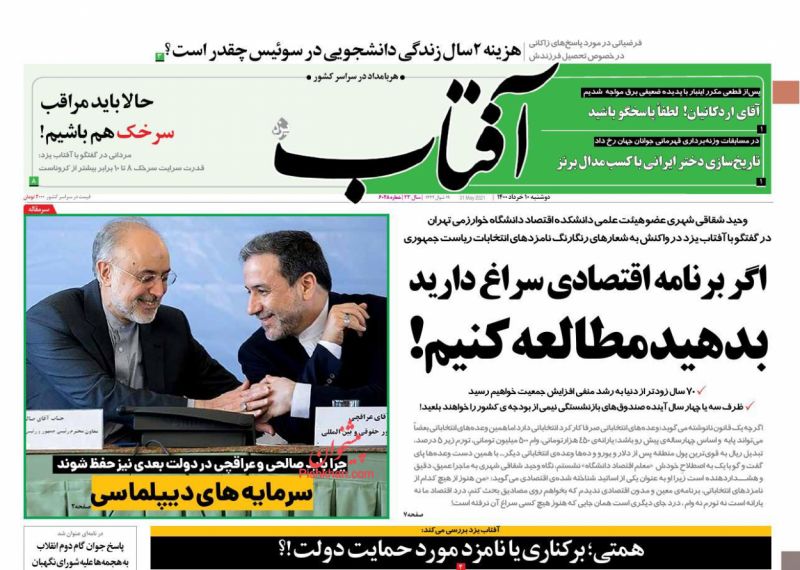 آفتاب یزد ، دوشنبه ۱۰ خرداد