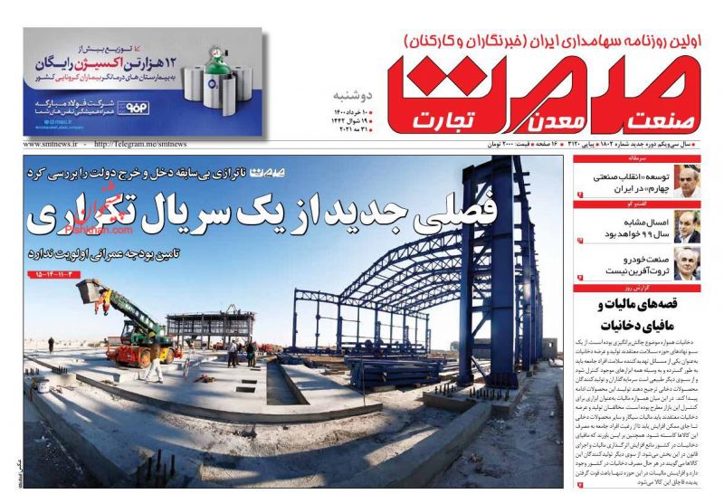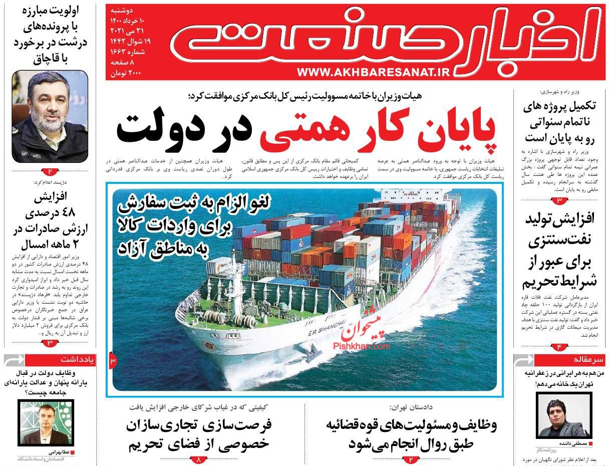 جهان صنعت ، دوشنبه ۱۰ خرداد