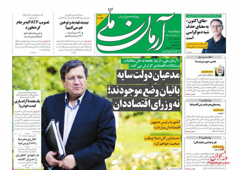 آرمان ملی ، دوشنبه ۱۰ خرداد