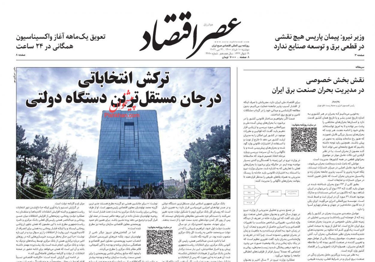 عصر اقتصاد ، دوشنبه ۱۰ خرداد