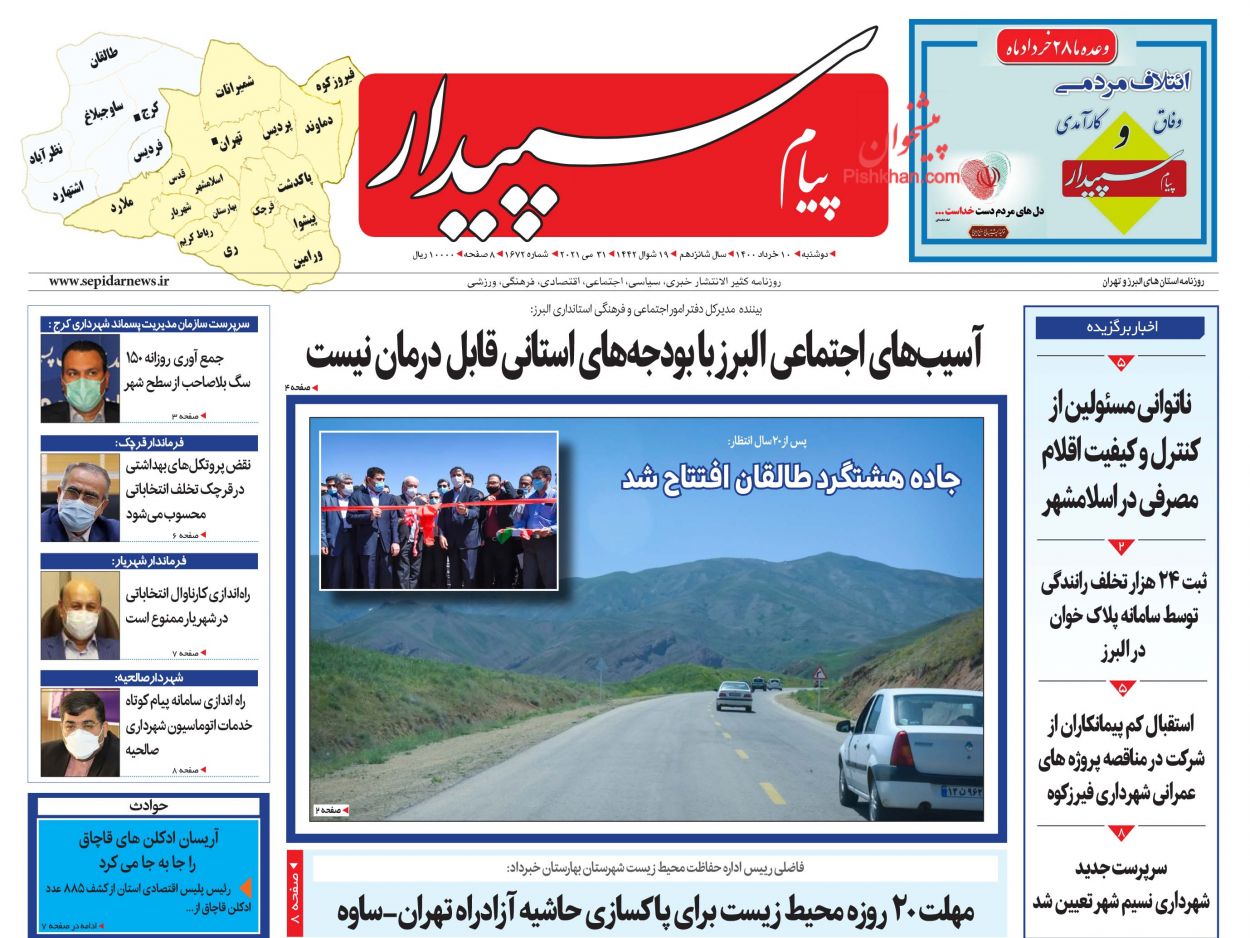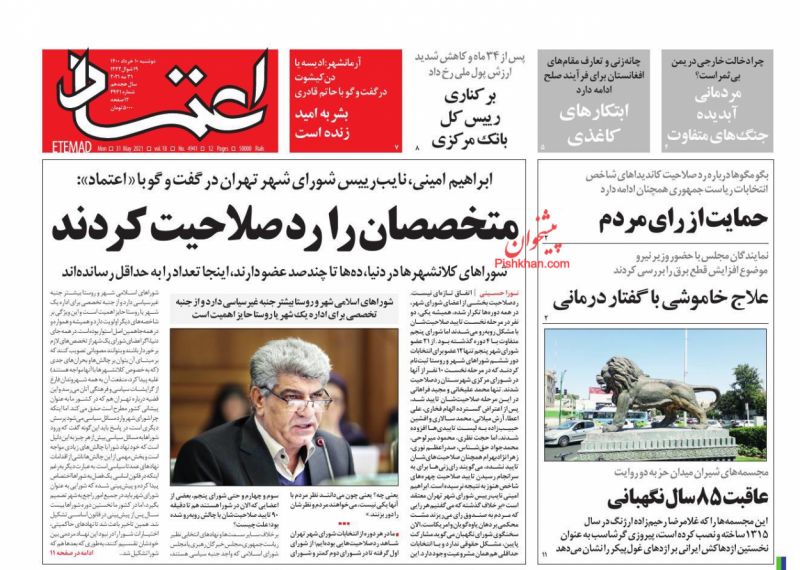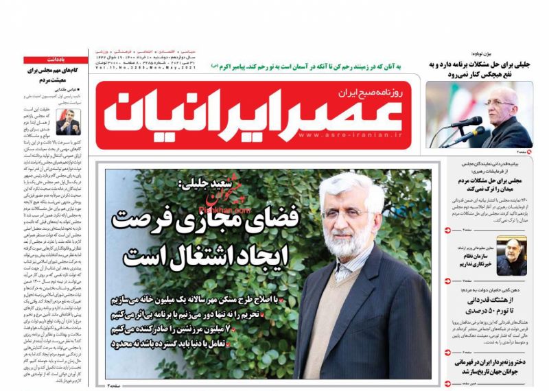 عصر ایرانیان ، دوشنبه ۱۰ خرداد