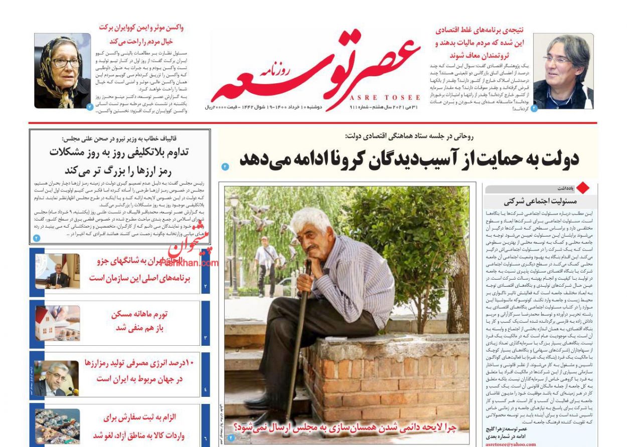 عصر توسعه ، دوشنبه ۱۰ خرداد