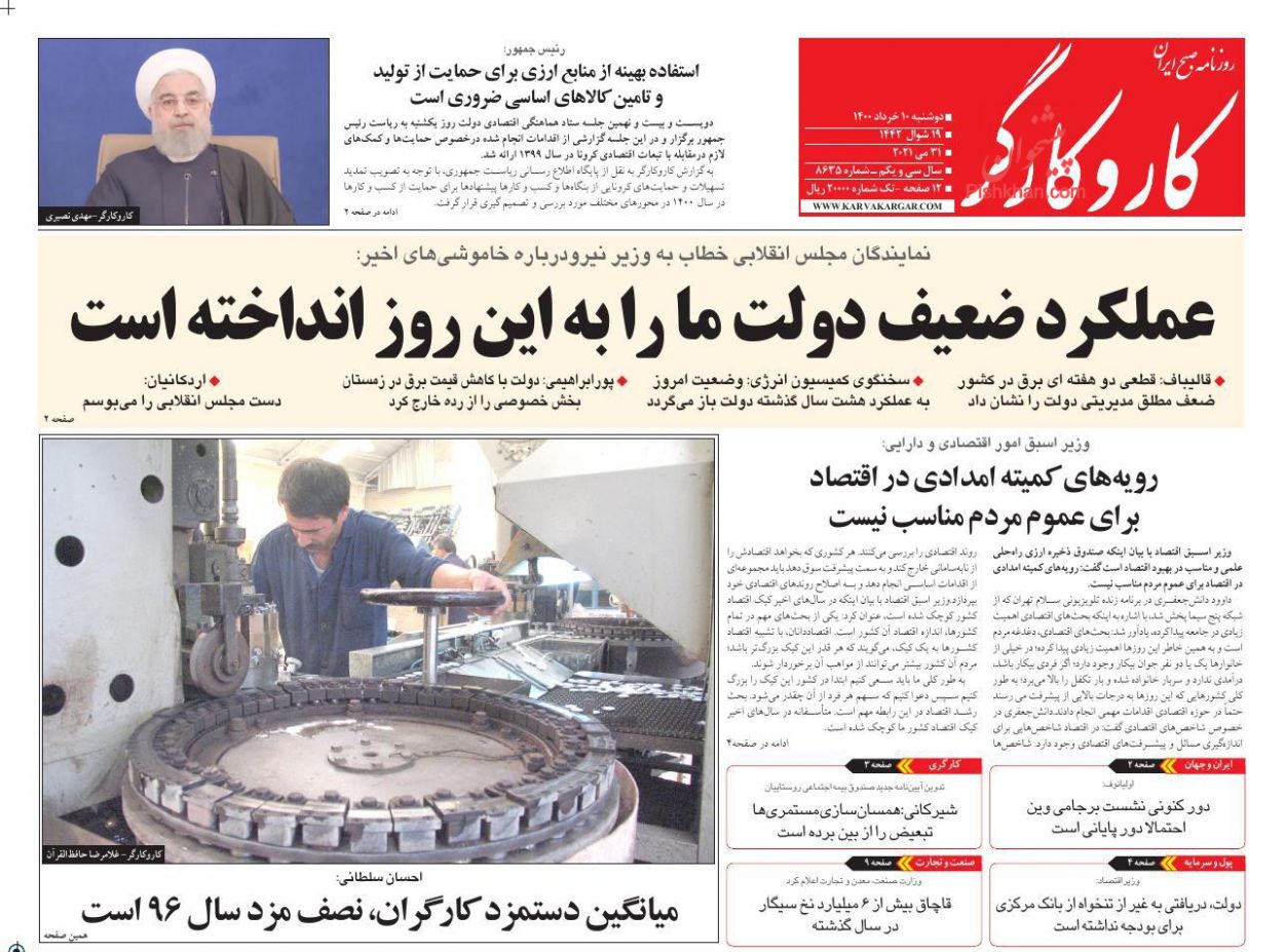 کار و کارگر ، دوشنبه ۱۰ خرداد