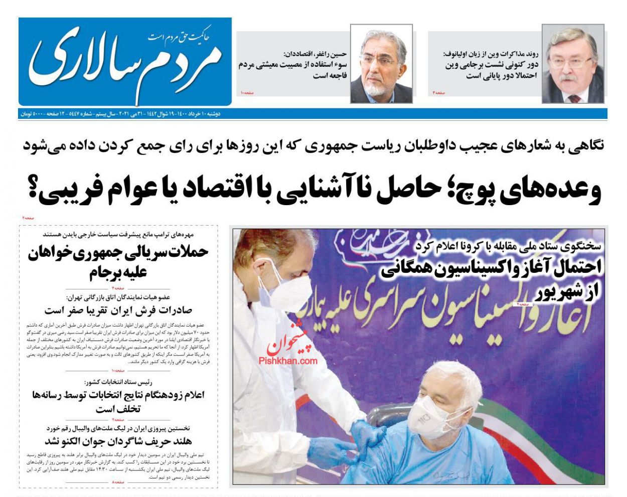 مردم سالاری ، دوشنبه ۱۰ خرداد
