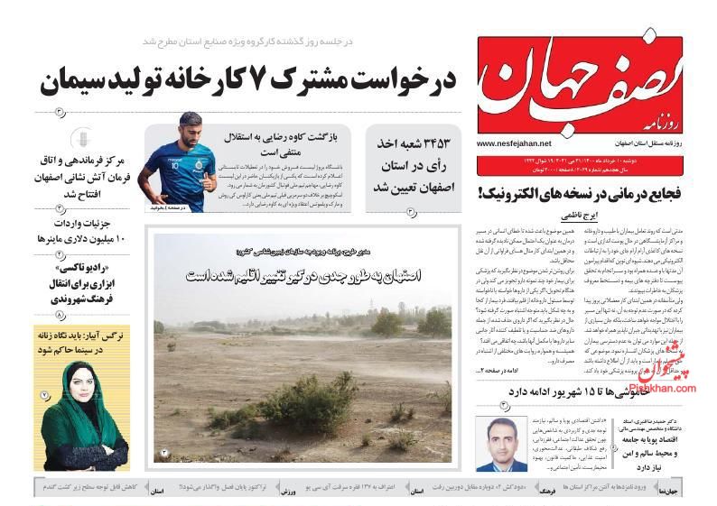 اصفهان امروز ، دوشنبه ۱۰ خرداد