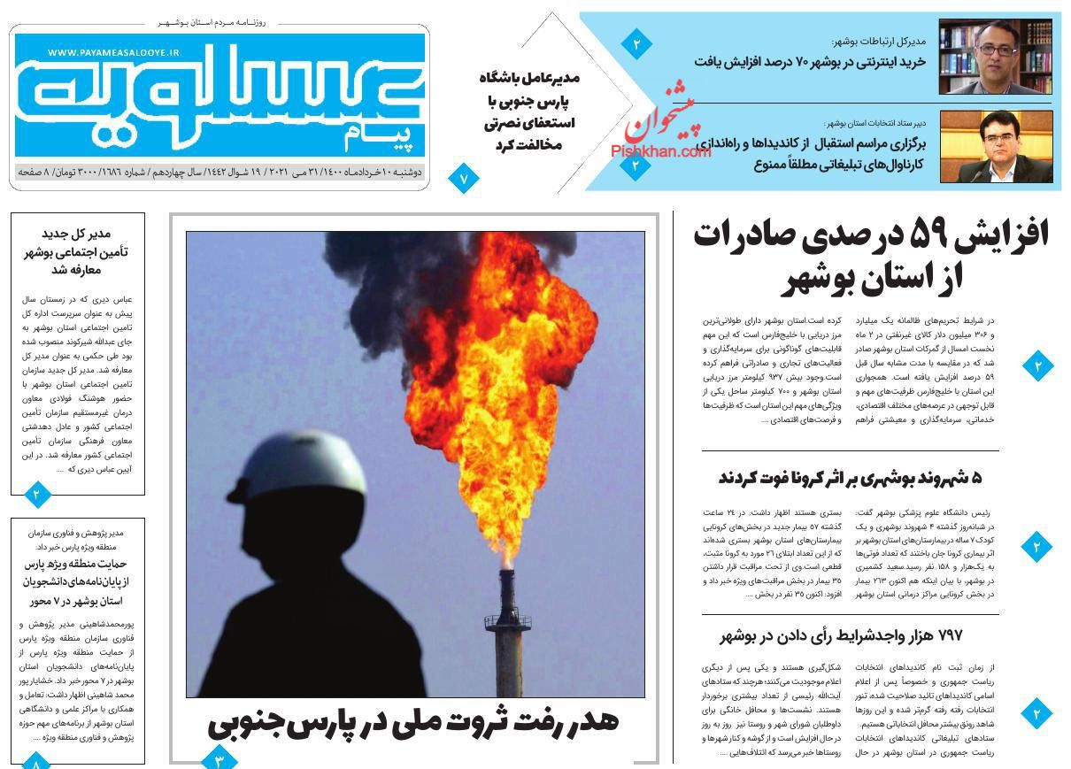 پیام عسلویه ، دوشنبه ۱۰ خرداد