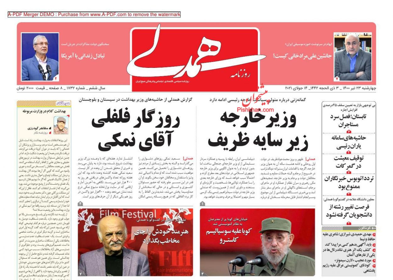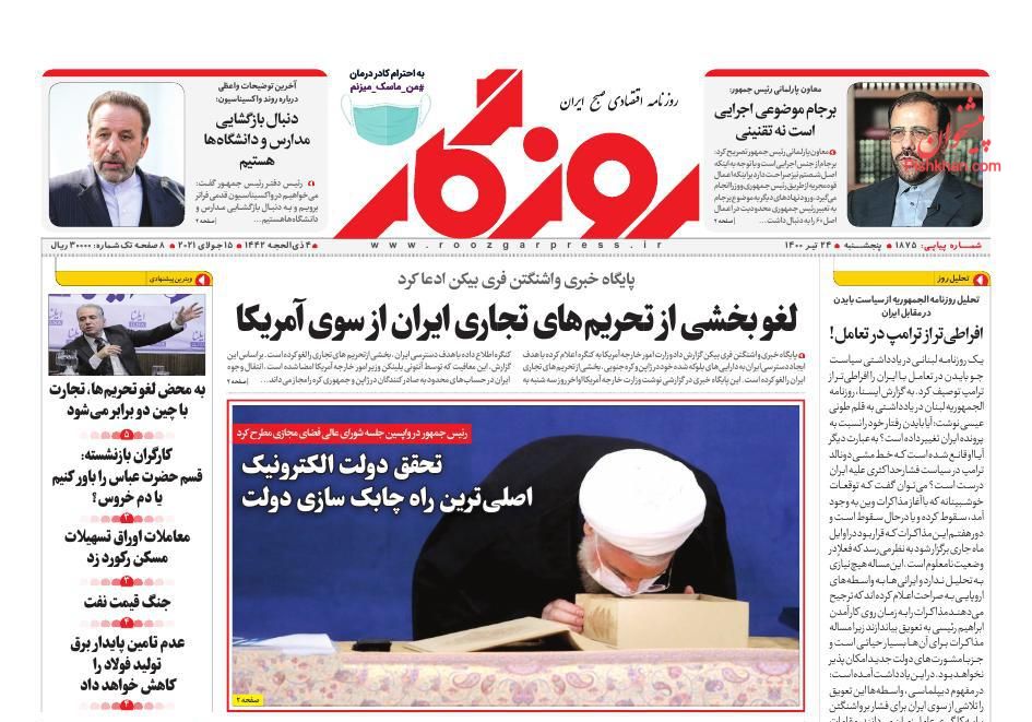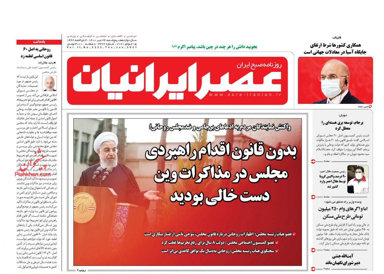 عصر ایرانیان ، پنجشنبه ۲۴ تیر