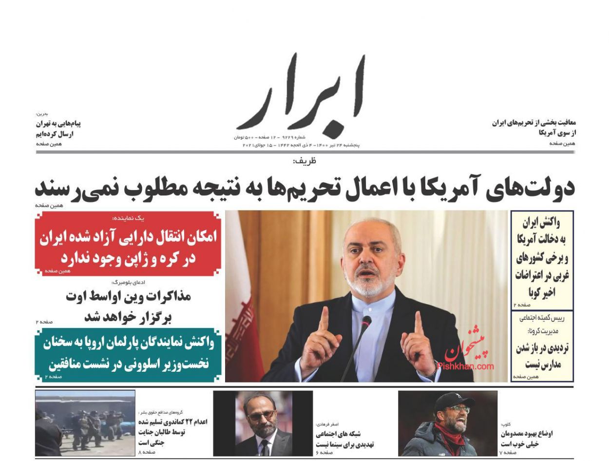 ابرار اقتصادی ، پنجشنبه ۲۴ تیر