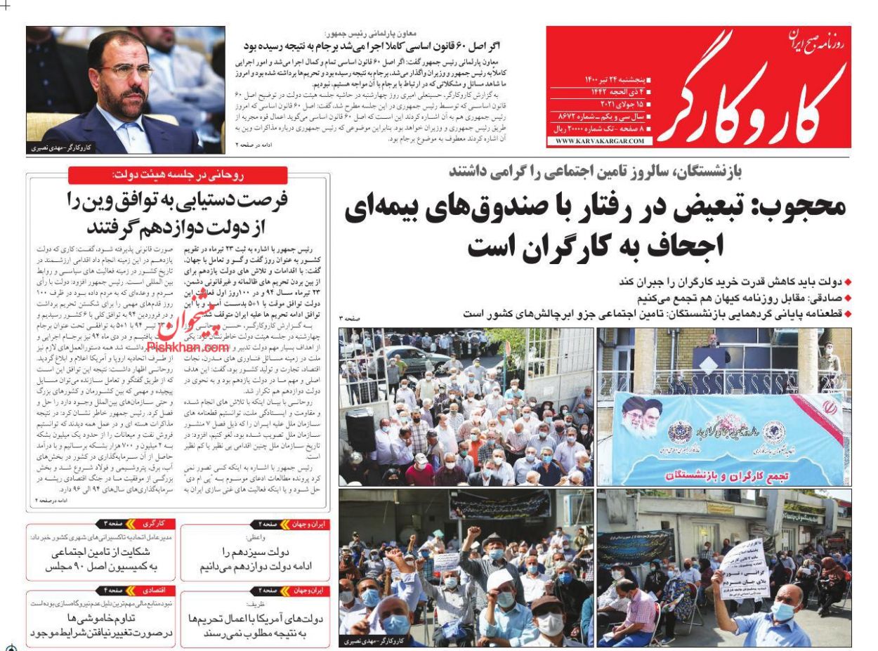 کار و کارگر ، پنجشنبه ۲۴ تیر