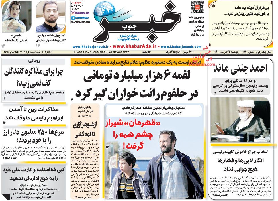 خبر جنوب ، پنجشنبه ۲۴ تیر