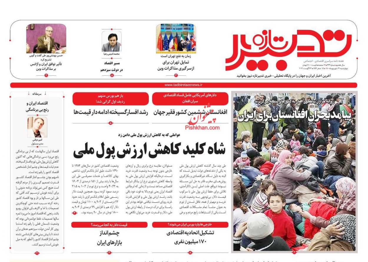 تدبیر تازه ، چهارشنبه ۳۱ شهريور