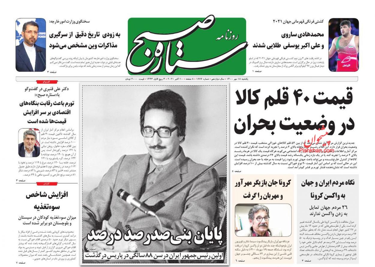 عصر ایرانیان ، یکشنبه ۱۸ مهر