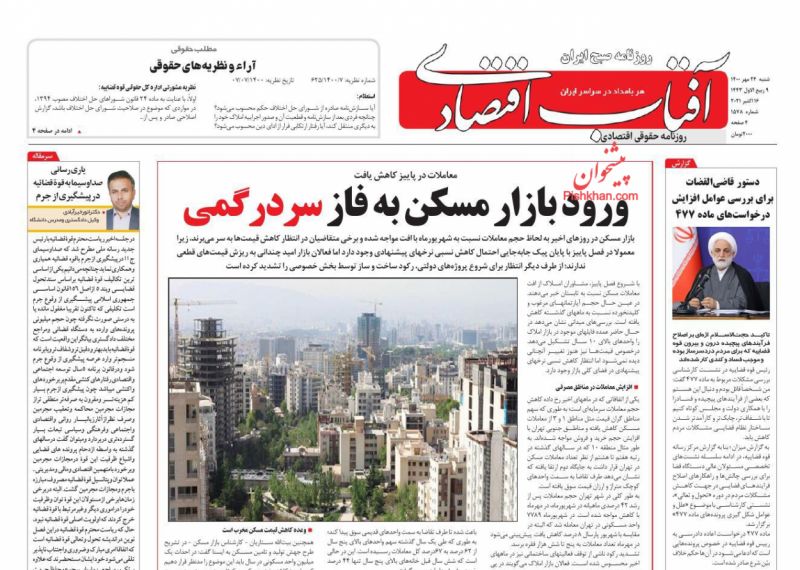 ابرار اقتصادی ، شنبه ۲۴ مهر