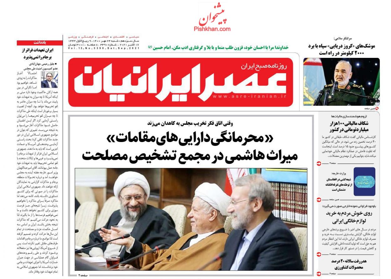 عصر ایرانیان ، شنبه ۲۴ مهر