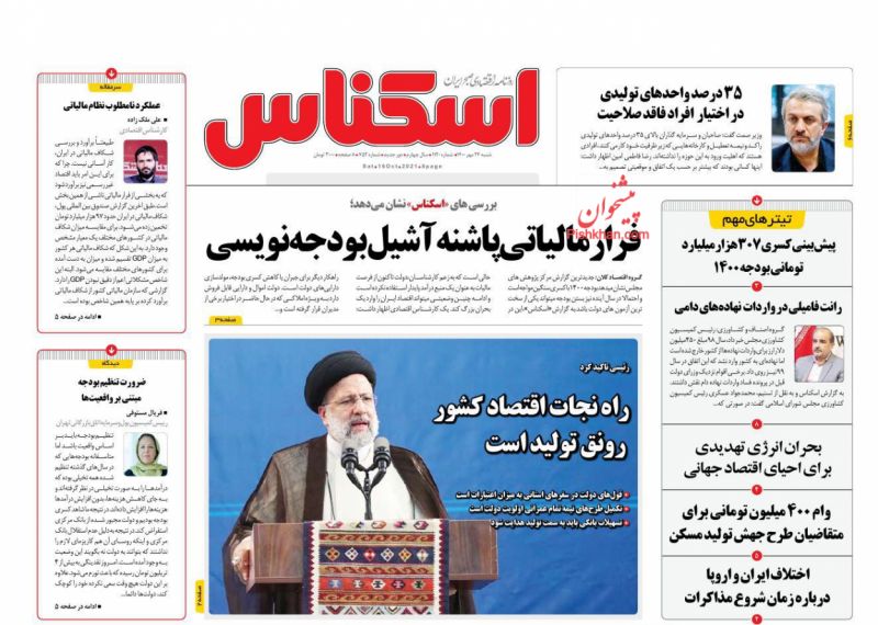 تدبیر تازه ، چهارشنبه ۳۱ شهريور