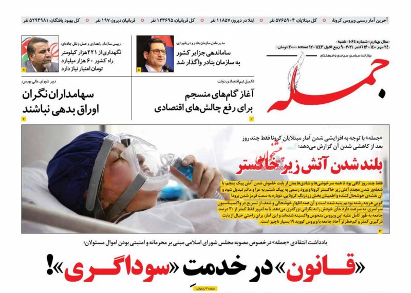 جمهوری اسلامی ، شنبه ۲۴ مهر