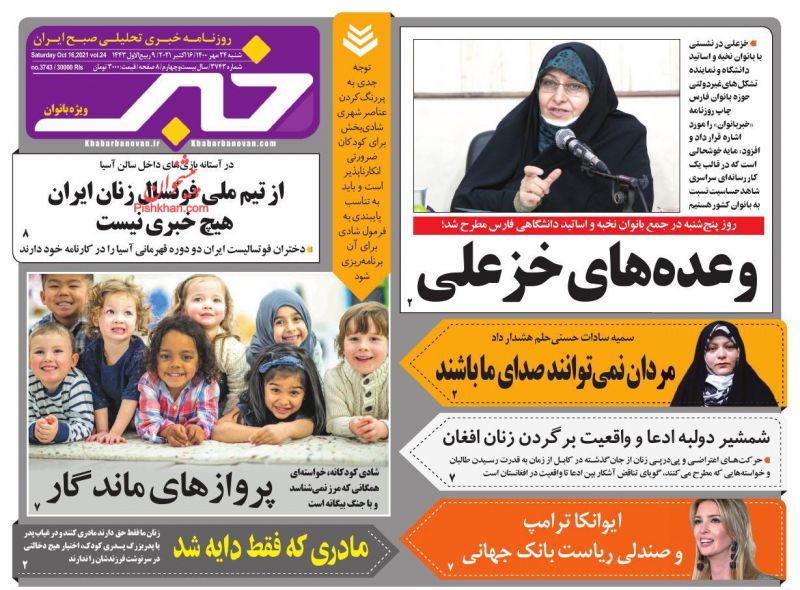خبر بانوان ، شنبه ۲۴ مهر